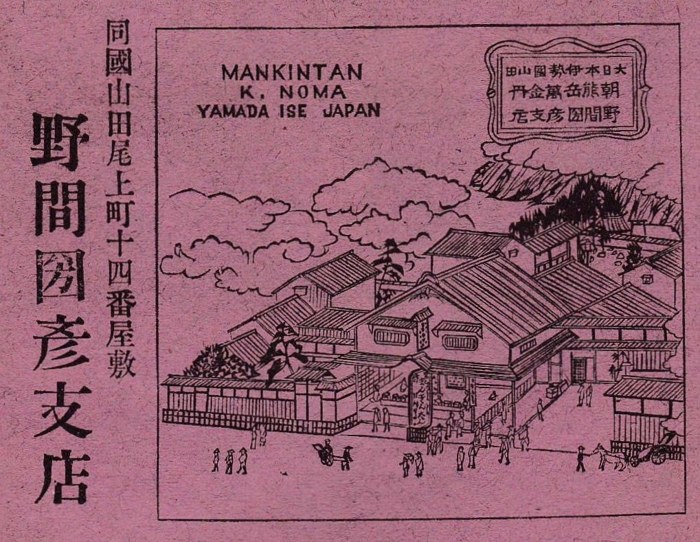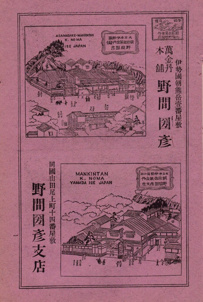 明治36年(1903年)2月に第5回内閣勧業博覧会 三重協賛会から発行された「三重県案内記」に掲載されている「萬金丹本舗 野間圀彦」の画像です。