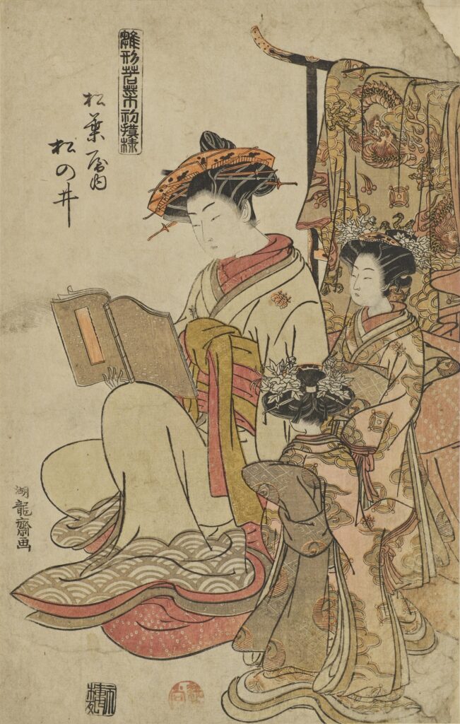 「雛形若菜の初模様」のうち、磯田湖龍斎筆の「松葉屋内松の井(まつばやうち まつのい)」(東京国立博物館蔵)の画像です。