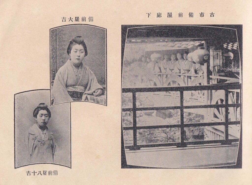 この頃から遊女は「絵」から「写真」になりました。備前屋は牛車楼とも呼ばれ、当時の古市では2大遊郭のうちの一軒です。